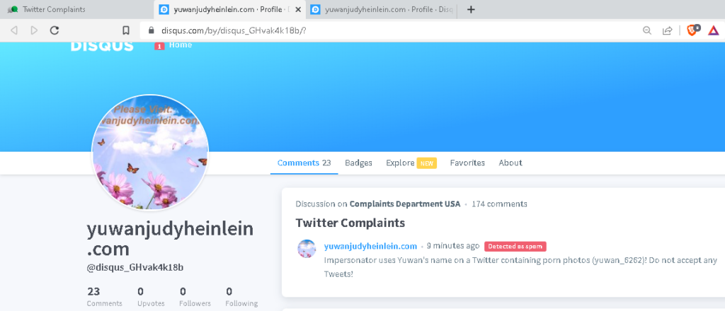 PSYCHO CYBERSCAMMER HACKERS ILLEGALLY uses ILLEGAL FAKE URLS and posted false derogatory content/comments online against her throughout 2022, “referring Trump supporters as Nazis”, etc. (emerges on/off, off/on repeatedly) to DEFAME HER CHARACTER, posted false, incriminating content not related to her online! WICKED REVENGE! Psycho CyberScammer Hackers uses illegal fake URLs to posts comments from Yuwan Judy Heinlein.com, ComplaintsDepartment.com, posts false comments she did NOT make, disinformation online.